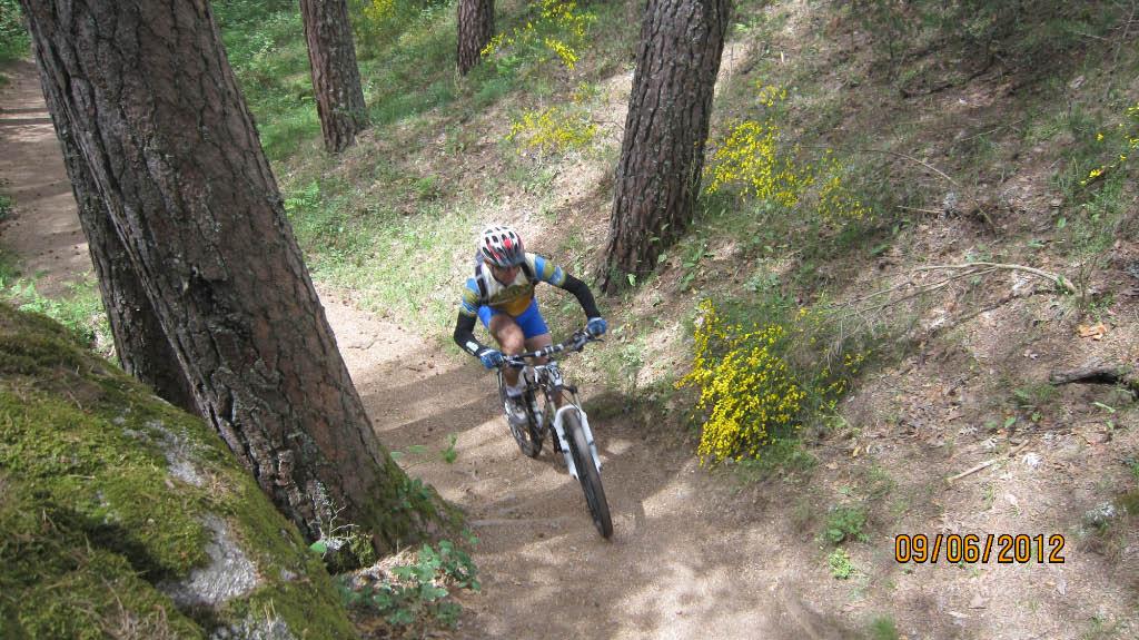 Hoy hemos salido Javier de D, Miguel, Val y yo. Subimos rápidamente hasta La Fuenfría y bajamos por el siempre divertido Carril del Gallo para continuar hasta Valsaín por los senderos que transcurren paralelos al río Eresma. Una vez en Valsaín asumimos el retorno con las subidas pestosas hasta la Cruz de la Gallega y desde este punto hasta el puerto de La Fuenfría . Aunque pretendíamos bajar por alguna trialera íbamos mal de tiempo y pedaleamos furiosamente por la carretera de la República porque no queríamos perdonar la cerveza del día. Ruta a buen ritmo por unos parajes espectaculares.