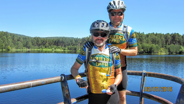 Desde la calleja larga bordeamos el Monasterio y emprendimos la subida por su calles hasta el pie del embalse del Romeral y el carril que nos dejó al comienzo de las 17 "zetas". Este año hay mucho matorral, por lo que en algunos tramos pedaleamos a ciegas con algún atranque. Acabamos este tramo sinuoso y proseguimos con los rampones hasta llegar a Malagón.